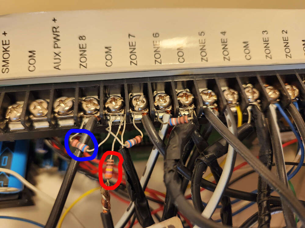 Another question, this time related to keypads. I have 2 x Mk7 keypads with prox. I noticed a photo on this site that had a resistor on the keypad wiring (see below). \ So my question... If I connect 2 key/proxpads to my FX100+ I do so in series... in that I connect a cable between the FX100+ to the first keypad, and then run a cable from the first keypad to the second keypad? Also, I assume both key/proxpads have a resistor installed on them? Thanks in advance for any advice.