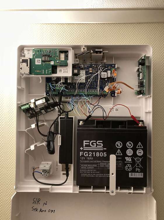 Hello everyone. I'm wondering if there is anyone that could point me in the right direction on how to wire my alarm system up. I'll tell you what I have and what i want to re-install. (it will be a few things less than the original setup) Long story short, i use to own a plumber shop and recently closed it down. However, i did manage to pay of the alarmsystem and took it with me. I now wish to install this at home (250sqm house) but in the heat of moving out from the shop premises I never marked the cables up befor cutting them. The things I have today (and had installed in the shop is: 1 x Main unit Honeywell FX100 C007-L-SD V3.19 (with the A081-00-SD GSM board and LAN module on the left hand side) 1 x Keypad CP051-30-01 1 x Rio C078 2 x Sirens B-503-0010 (marked 1021 & 1022) 2 x Smoke detectors Aritech DP721RT (marked 1017 & 1018) 5 x PIR Interlogix DDV1016AM (marked 1003, 1004, 1011, 1015 & 1016) 3 x Doorsensors/ magnets Alarmtech B-582-0013 (marked 1001, 1002 & 1004) 1 x Camera Axis M1145-L 1 x Axis companion switch 4CH, 5801-351-01 I could really need some help on wiring all these components in to the Rio and the main unit. Should i have a CAT5 cable pulled all the way from the router down to the main unit to the LAN module for the camera or from the camera straight to the router, or one cable from the router to the switch and from the switch to the main unit? What should go through the Rio and what should go straight to the main unit? And most important what cable goes where? I have all the cables and will pull it all this weekend but it would be great to get some help with the wiring to get it started. How do I change the phone number i the alarm system, that the alarm calls in an event? Is there an app I can use to check the camera and admin the alarm remotely? Would really appreciate any help towards getting my old/new alarm system up and running. kind regards, Henrik from Sweden.