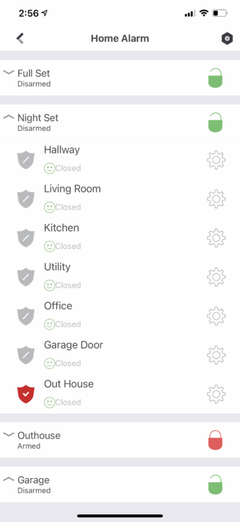But what i would want to do ideally is, if Night Set is set - lets say i want to let a delivery in, yet still want the rest of the house armed, i would want to un-arm Garage alone. At the moment i cannot do that, i have to un-set everything..